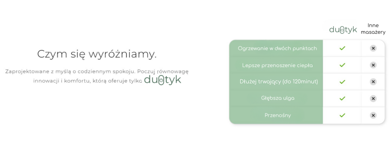 DuotykPro™ bez wysiłku rozluźnia napięcie karku (i nie tylko), zapewniając kojące ciepło i głęboki masaż, a wszystko to bez użycia rąk.
